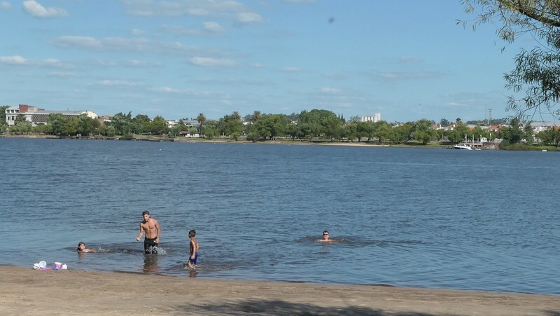 Der nächste Grenzübergang nach Argentinien ist bei Fray Bentos über die Brücke des Rio Uruguays. Der Weg dorthin führt beim Ort Mercedes über den Rio Negro und das Wasser sah einfach herlich aus. Nach der Brücke war ein Schild zum Strand angeschrieben und spontan haben wir beschlossen: den Strand schauen wir uns genauer an. Nachdem ein paar Kinder im Wasser geplanscht haben, konnte das Wasser ja nicht so schlecht sein. Also nichts wie rein.