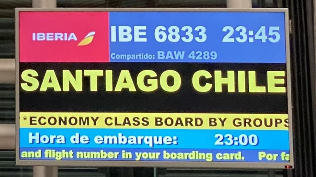 Nachdem wir alle Voraussetzungen für die Einreise nach Chile erfüllt hatten sollte es endlich los gehen. Von Stuttgart nach Madrid und dann weiter nach Santiago. Beim Online-CheckIn wurden wir von der Airline IBERIA darauf hingewiesen, dass wir auch für Spanien das Spain Travel Health auszufüllen haben. Zudem wollte IBERIA auch nochmal alle erforderlichen Reisedokumente hochgeladen bekommen um zu prüfen ob wir in den Flieger einsteigen dürfen. Mit dem ganzen „Papierkram“ waren wir total geschafft, aber mit den Flügen hat alles Bestens geklappt.