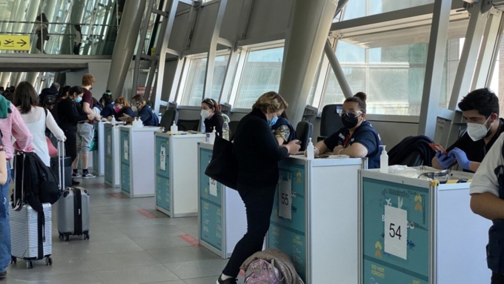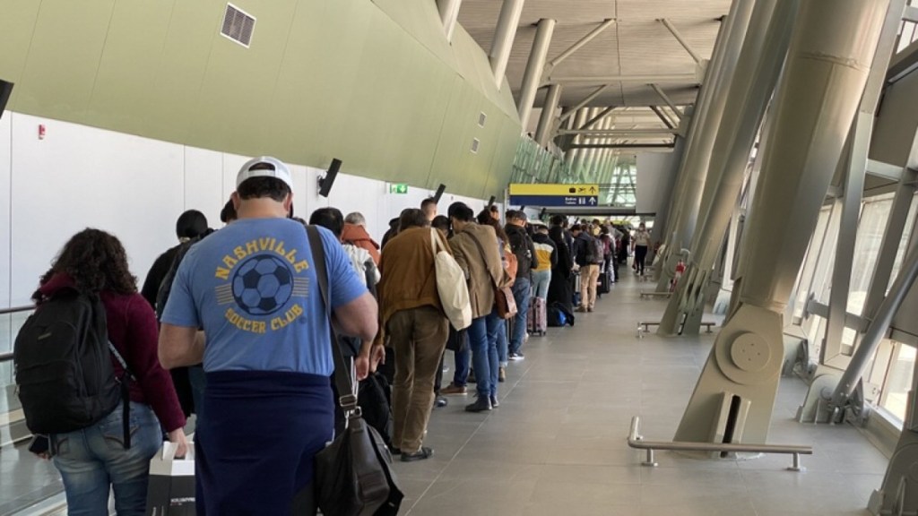 Schlange vor dem Control Sanitario