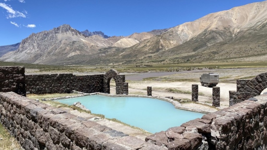 Wieder zurück aus dem Valle Hermose und dem Tal des Rio Salado sind wir im Ort El Sosneado ins nächste Tal zu den Termas Sosneado abgebogen. Hier ging es ca. 60 km auf Schotter tief ins Tal hinein, aber ohne größer Steigung. Fast am Ende des Tals dann die Attraktion: ein Lost Place 🤩.