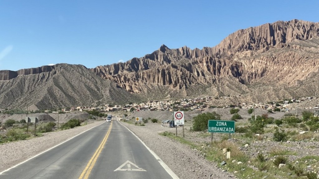 Ab San Salvador de Jujuy fährt man dann in der Quebrada de Humahuaca am Fluss des Rio Grande de Jujuy entlang. Die Straße führt bis zum Grenzübergang nach Bolivien bei La Quiaca. Dem entsprechend herrscht auf der gut ausgebauten Strecke viel Verkehr.