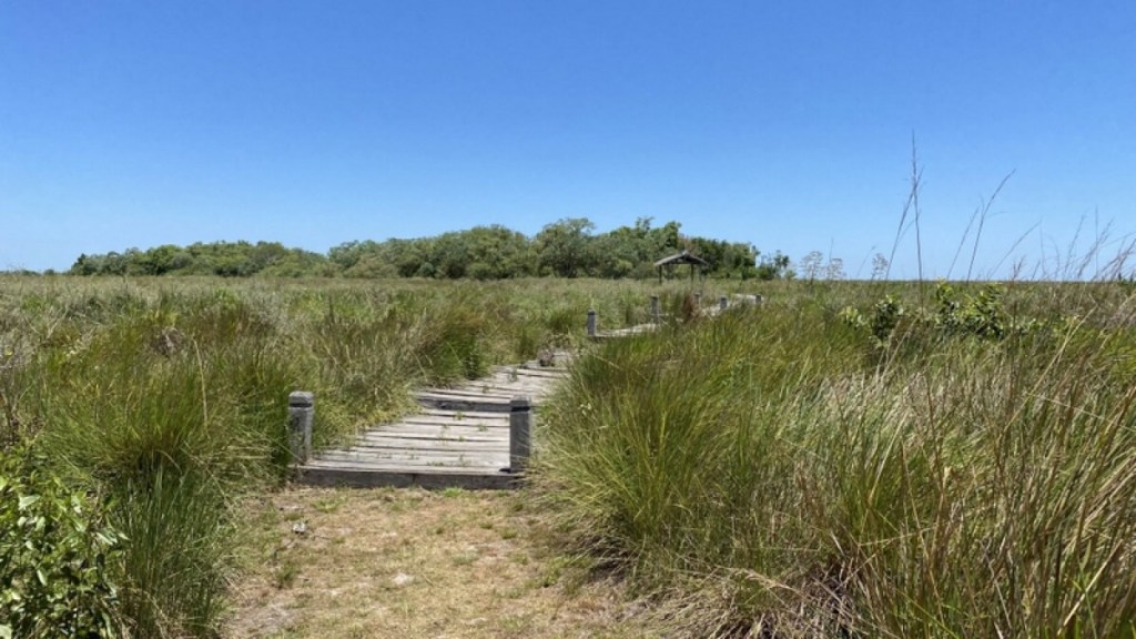 Nachdem wir uns häuslich eingerichtet hatten sind wir los um die Tierwelt zu erkunden. Direkt vom Campground gibt es einen Rundwanderweg, durch Wald, Wiese und auf Stegen über den Sumpf. Wieder erwarten gab es so gut wie keine Moskitos, denn es hatte seit Wochen nicht mehr geregnet und die Sümpfe waren relativ ausgetrocknet.