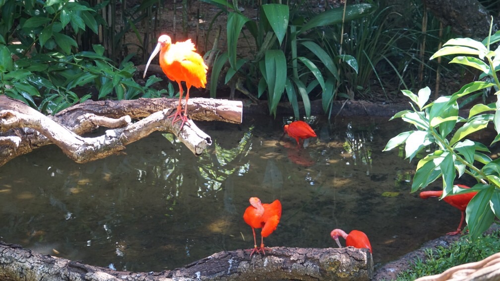 Der Park war in Themenbereiche angeordnet und alles war in portugisiesch, spanisch und englisch beschriftet. Der Weg führte immer abwechselnd an den Volieren vorbei oder durch die Volieren durch so dass man den Tieren ganz nahe kommen konnte, vor allem den neugierigen Papagaien.