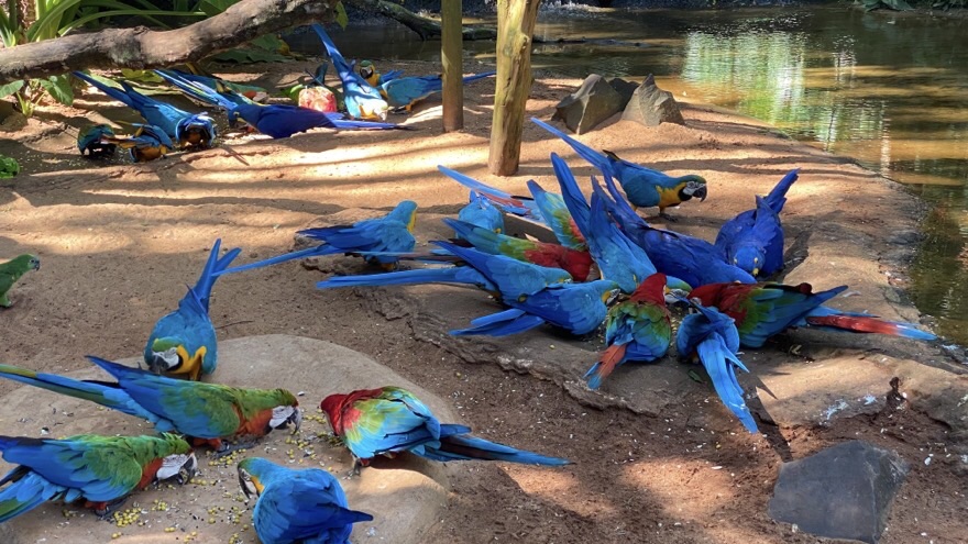 Nachdem wir kurz nach Mittag mit den Wasserfällen fertig waren, haben wir uns auch noch den Parque das Aves angeschaut, da wir schon mehrfach gehört und gelesen haben, dass der Vogelpark sehr schön sein soll und dem erhalt der in Brasilien vom aussterben bedrohten Vogelarten dient.