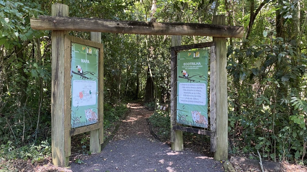 Der Bus bringt einen die 11 km an den Start des „Trilha das Cateratas“. Von dort kann man gemütlich auf einem Wanderweg, immer mit Blick auf die vielzahl der Wasserfälle wandern, bis man am Ende unten, auf einem Steg fast direkt vor dem Haupt-Wasserfall Garganta do Diabo, also dem Teufelsschlund zum stehen kommt.