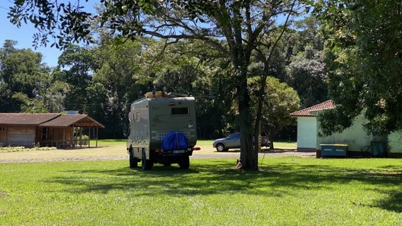 Nach einer weiteren Nacht im Eco Hostel ging es am nächsten Morgen dann auf die knapp 700 km nach Curitiba. Viel sehenswertes haben wir auf der Strecke in unserer Recherche nicht entdecken können, aber unverhofft kommt oft und so war nach nicht mal 100 km ein Schild Parque Nacional Iguazu 🤔. Aha, hier hätten wir jetzt eigentlich keinen Ableger vom Nationalpark Igauzu erwartet, aber zeitlich gerade richtig für einen ausgiebigen Frühstücksstop bogen wir rechts ab und parkten uns auf die Wiese unter einen schattenspendenen Baum.