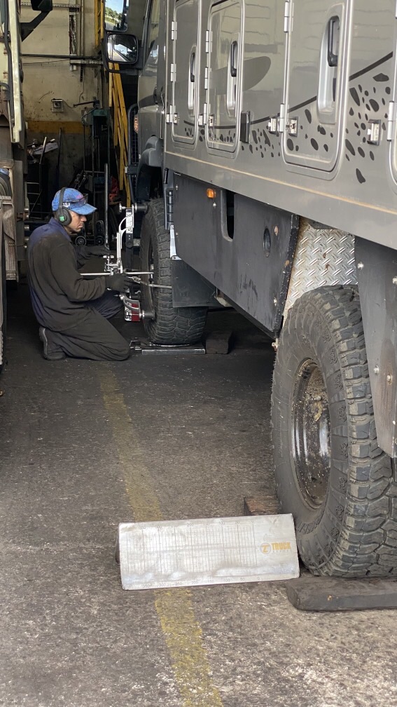 Am Samstag fuhren wir dann ganz früh bei der Werkstatt Molas Kuzma vor. Der Meister und sein Mitarbeiter schauten sich unser LKWle ganz genau an und waren der Meinung dass die Lenkstange zu viel Spiel hat und dass der Lenkungs-Dämpfer der bei unserem Fahrzeug zusätzlich verbaut, aber schon seit längerer Zeit ausgerissen war, schon seinen Sinn hatte und sie ihn wieder fixieren werden. Wir sollen am Montag vorbeikommen.